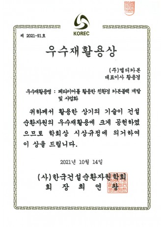 녹색산업 활성화 유공포상 (한국환경산업기술원장 표창)