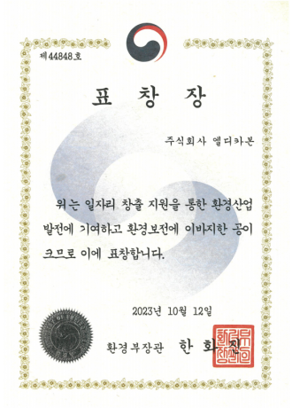 친환경 기술진흥 및 소비촉진 유공 환경부 장관 표창